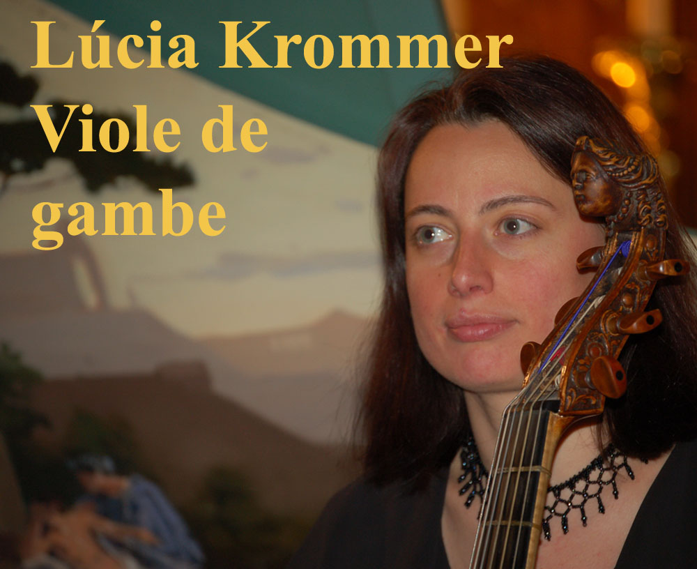 - Lúcia Krommer : Née en Hongrie, Lúcia obtient à Budapest dès 1996 un diplôme avec distinction pour le violoncelle, la viole de gambe et la musique de chambre. Elle se perfectionne en viole de gambe auprès de José Vázquez à l’Université de Vienne, avec lequel elle se produit régulièrement en duo. Elle enseigne la viole de gambe, le violoncelle baroque et la musique de chambre dans le département de musique ancienne de l’Université de Brno de 2002 à 2006, ainsi que dans de nombreuses académies d’été en France, Espagne, Grande-Bretagne, République tchèque et Hongrie. Elle parcourt l’Europe avec violoncelle baroque et viole de gambe comme soliste et membre de nombreux ensembles baroques.