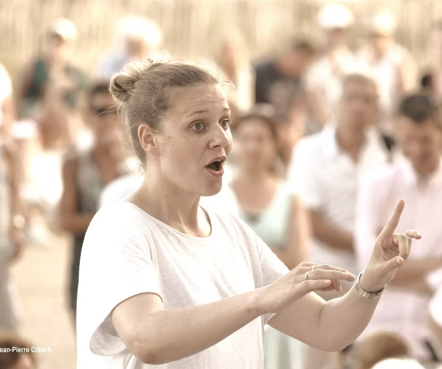 Blandine Deforge : "Le chant fait partie de moi d’aussi loin que je m’en souvienne. Je suis depuis toujours imprégnée de pratiques collectives de la musique, en tant que choriste depuis l’âge de 10 ans, pianiste accompagnatrice puis cheffe de chœur professionnelle sur un répertoire de chansons francophones et anglophones, notamment au sein de l'association Chanson Contemporaine.