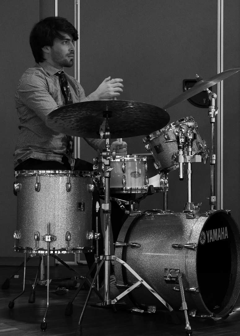 • Jérôme Renaud : Né en 1992, Jérôme commence la batterie dès son plus jeune âge. À 16 ans, il intègre le Conservatoire de Clermont-Ferrand pour apprendre les percussions classiques et se familiariser avec le répertoire des grands orchestres classiques. Il obtiendra son D.E.M avec mention très bien.