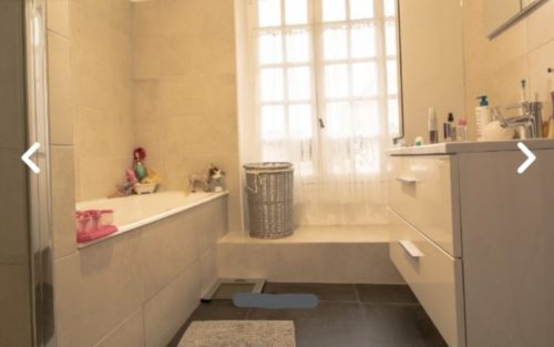 Sur le palier devant la chambre, une belle salle de bain (baignoire + douche) + WC séparé. Ces sanitaires sont communs.