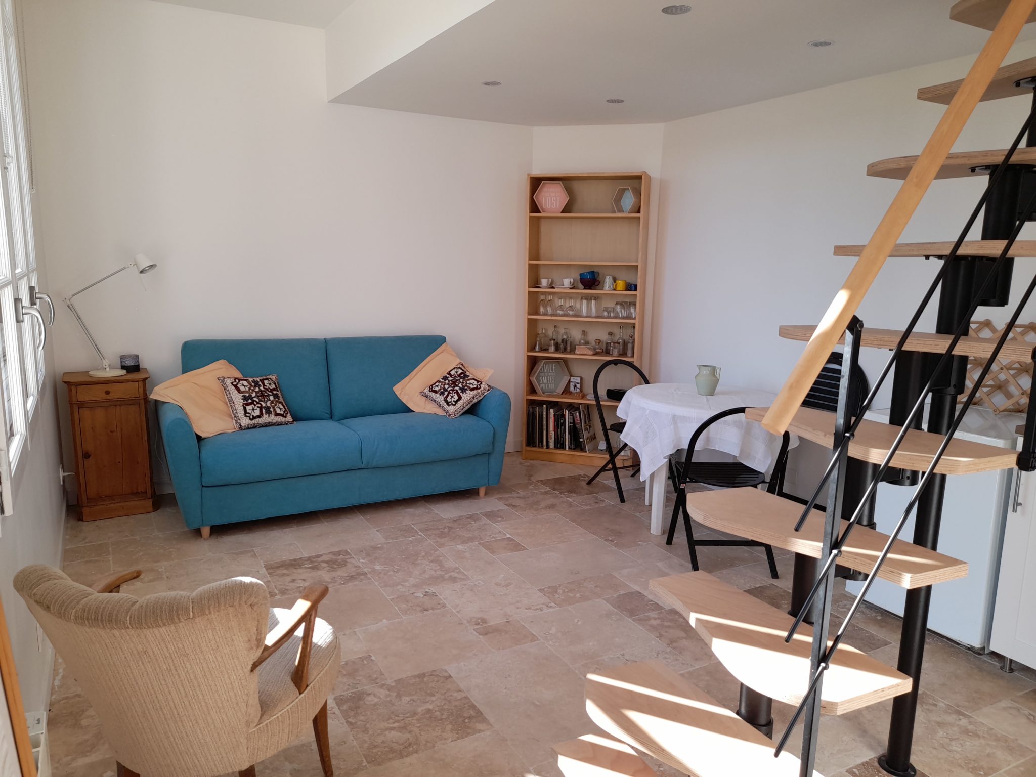 A l'étage une chambrette avec un lit 90 et une seconde avec un lit 140. Dans la pièce commune un canapé lit 140 de bonne qualité.