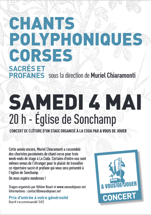 Vous avez l’embarras du choix pour chanter et jouer dans cette belle région ! Emilie Souillot, Adèle Bracco, Vincent Tournoud, Nicolas Manich, Camille Pascal, Lanna Zita, Alain Maucci (Vite vite ! deux dernières places pour le Chœur à l’ouvrage.) Autant d’univers singuliers. Sans oublier la célèbre planche à laver (!) de Stéphane Séva qui plait toujours beaucoup, la musique argentine pour guitare et voix menée par Anne Le Corre et ses complices, et les très beaux stages de Marie-Laure Franc au Vernet Ste Marguerite.