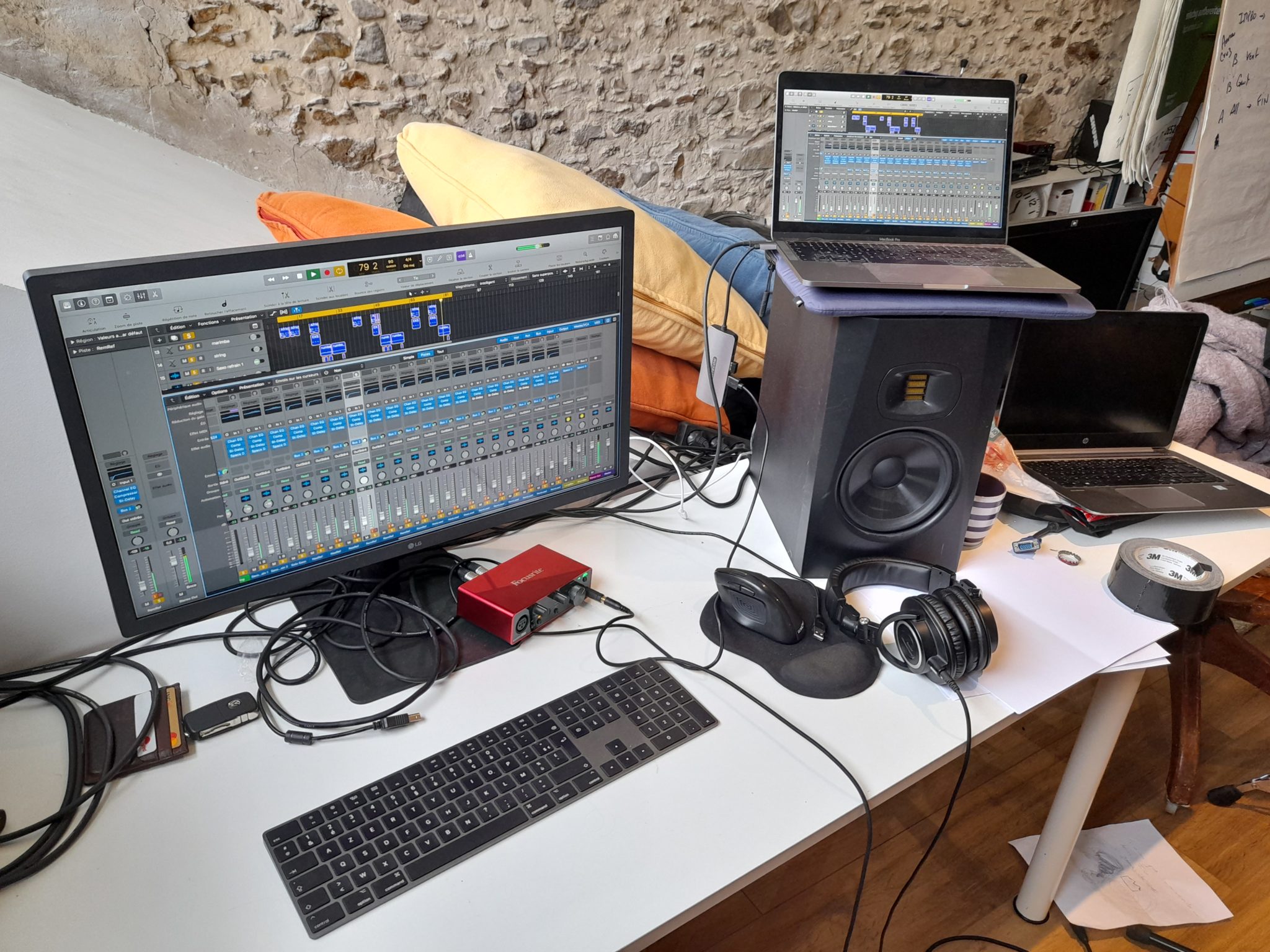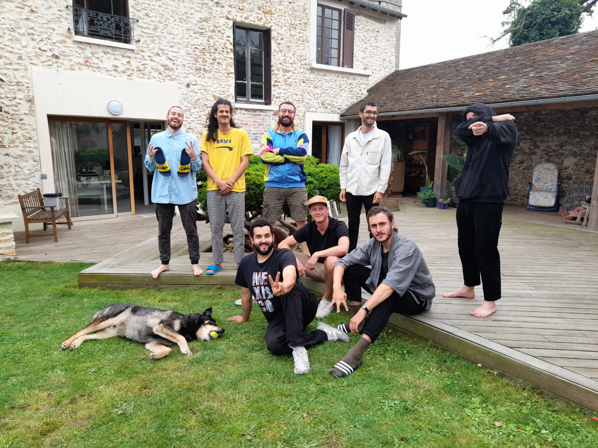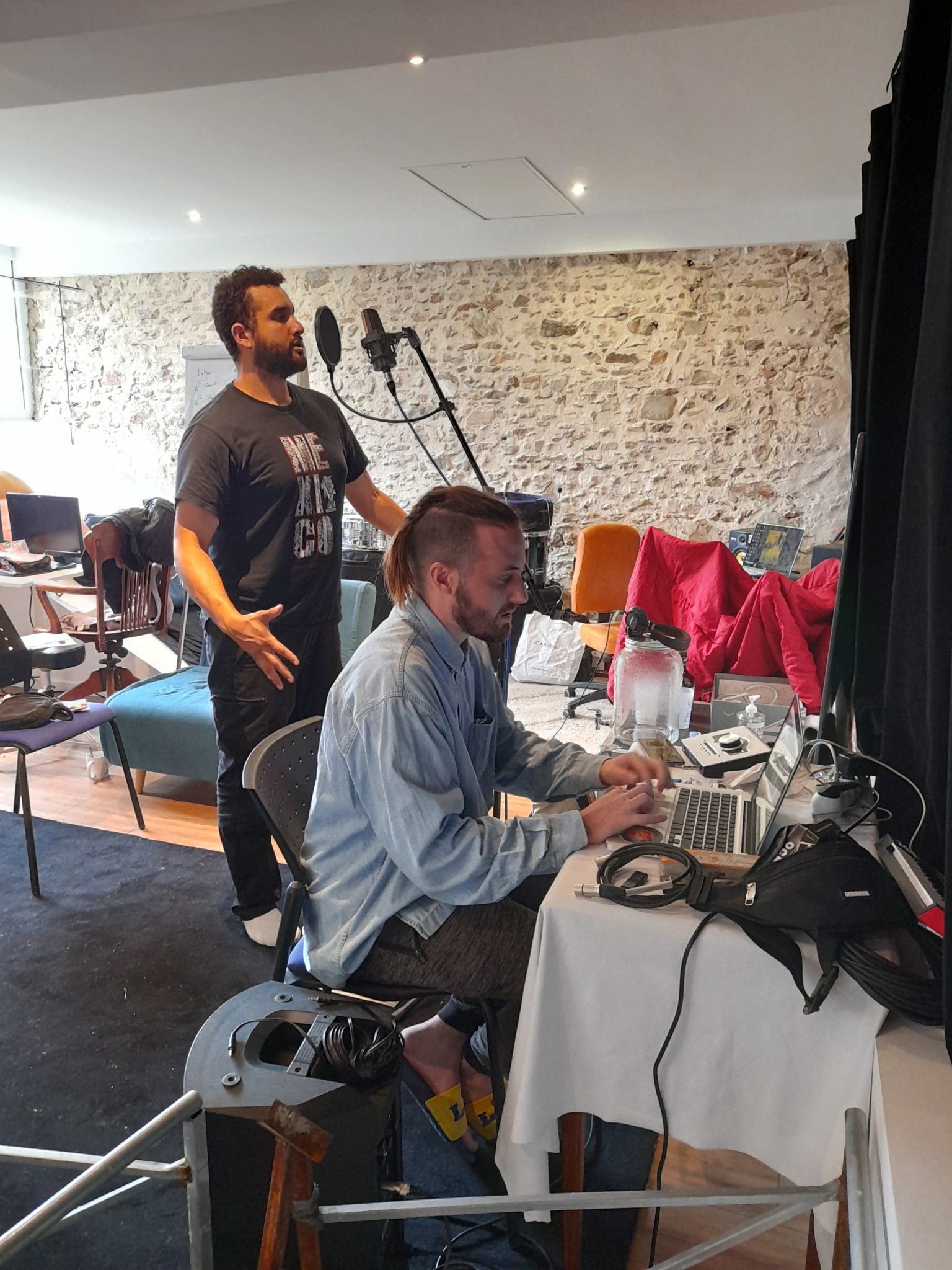 En août, La Coda a accueilli son 1er groupe en résidence : une joyeuse bande fédérée par l’ultra sympathique Nassim venu de Bruxelles pour l’occasion. (Merci à Zach et Hector de lui avoir proposé l’adresse !) Ils ont profité du lieu pour une immersion de 6 jours dans un rap tantôt débridé tantôt fâché. Une fois n’est pas coutume, il y avait plus d’ordinateurs et câbles que d’instruments dans la salle. Boucles, samples, effets, reprises ont rythmé leur jours (et leurs nuits !). Ils ont testé, éprouvé et partagé leur plaisir de l’écriture, du flow et de l’improvisation. Des styles musicaux très différents au sein de ce collectif (éphémère ?) et le plaisir pour moi de nouvelles rencontres et de constater que le lieu plaît aussi pour ce type de séjour. Qu’on se le dise 😉