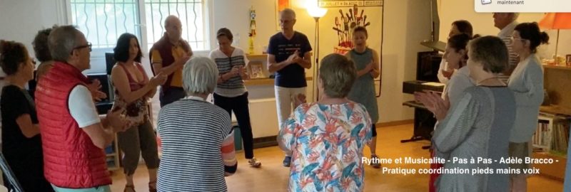 Le rythme et moi, ça a toujours fait deux, la coordination idem. Dommage car je suis attirée par le jazz vocal que j'aimerais pouvoir pratiquer. Tombée par hasard sur la méthode Pas à pas, j'ai décidé, sans trop y croire, d'essayer un stage. J'en reviens conquise. Merci mille fois Adèle pour tous les points de repères que tu m'apportés, ton accueil chaleureux,ton enthousiasme et ta rigueur. Chacun est pris en compte quelque soit son niveau, chacun réussit à trouver sa place dans les réalisations collectives. L'entraînement est dense et les nombreux outils proposés permettent d'identifier la structure rythmique des morceaux écoutés (repérage du 1er temps grâce à l'écoute de la pulsation et des appuis harmoniques, flux rythmiques binaires ou ternaires, syncopes et contre-temps etc....). J'ai maintenant la certitude de pouvoir progresser dans tous les styles de musique ainsi qu'en danse. Des mondes s'ouvrent !
