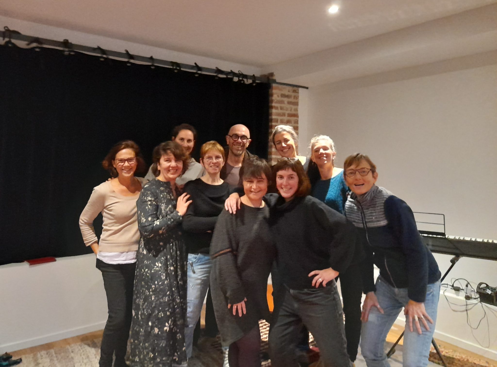 Le duo Emmanuel/Jean-Jacques fonctionne à merveille, pour une semaine de travail et de partage intense, mentalement et physiquement, mais toujours dans la bonne humeur et avec une qualité pédagogique au top. En témoigne l’engagement corporel d’Emmanuel pour nous aider à ressentir certains aspects du fonctionnement de la voix :). Encore merci à eux, je repars avec une boîte à outils bien fournie, de belles rencontres, et plein d’idées et envies musicales ! Merci aussi à A Vous de Jouer pour la gestion administrative et logistique très fluide !