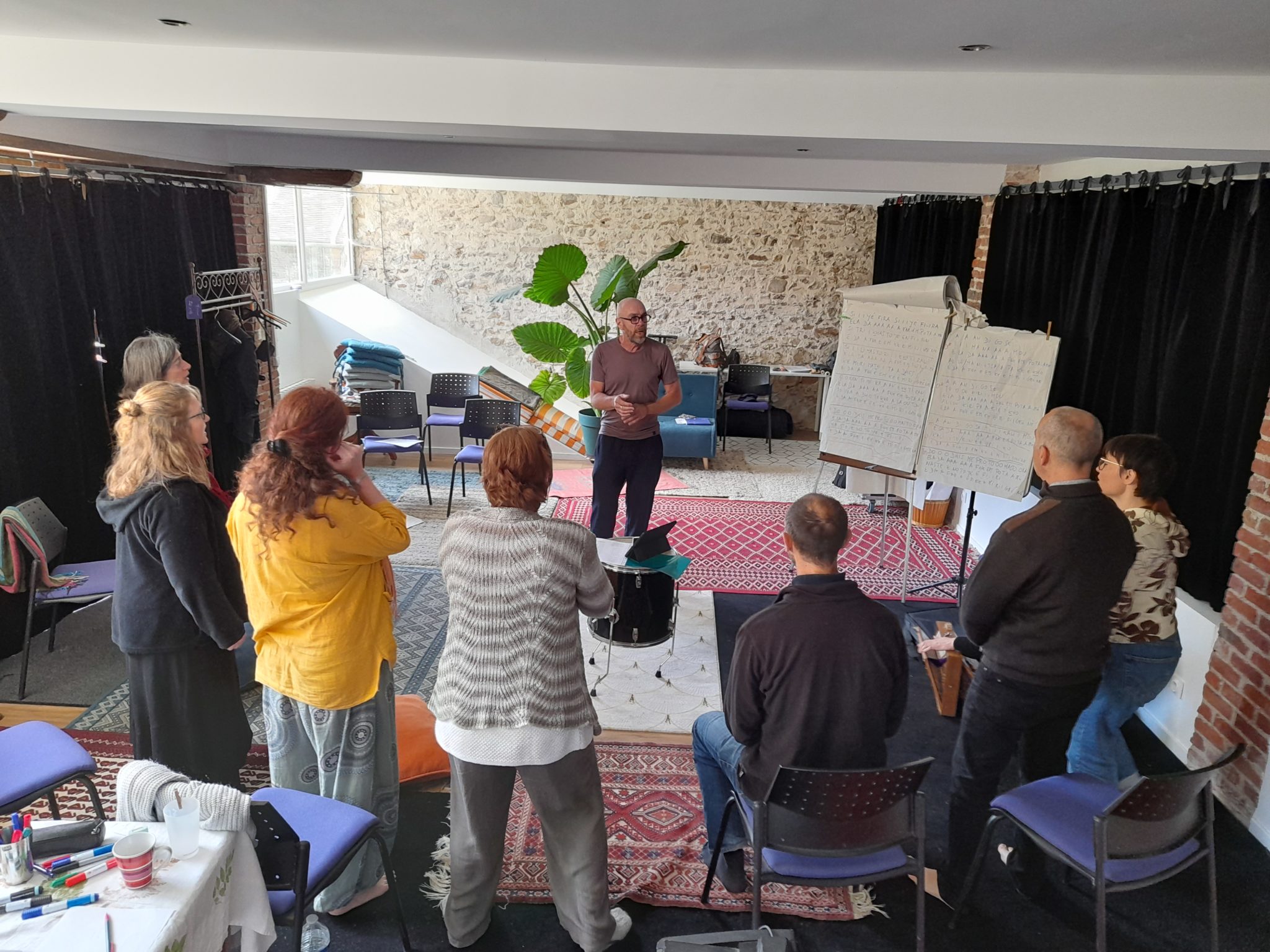Un week-end de stage qui fait découvrir des chants du monde, l’écoute et la joie des harmonies ! Jean-Jacques apporte aussi des percussions intrigantes à découvrir ! Bienveillance et joie !