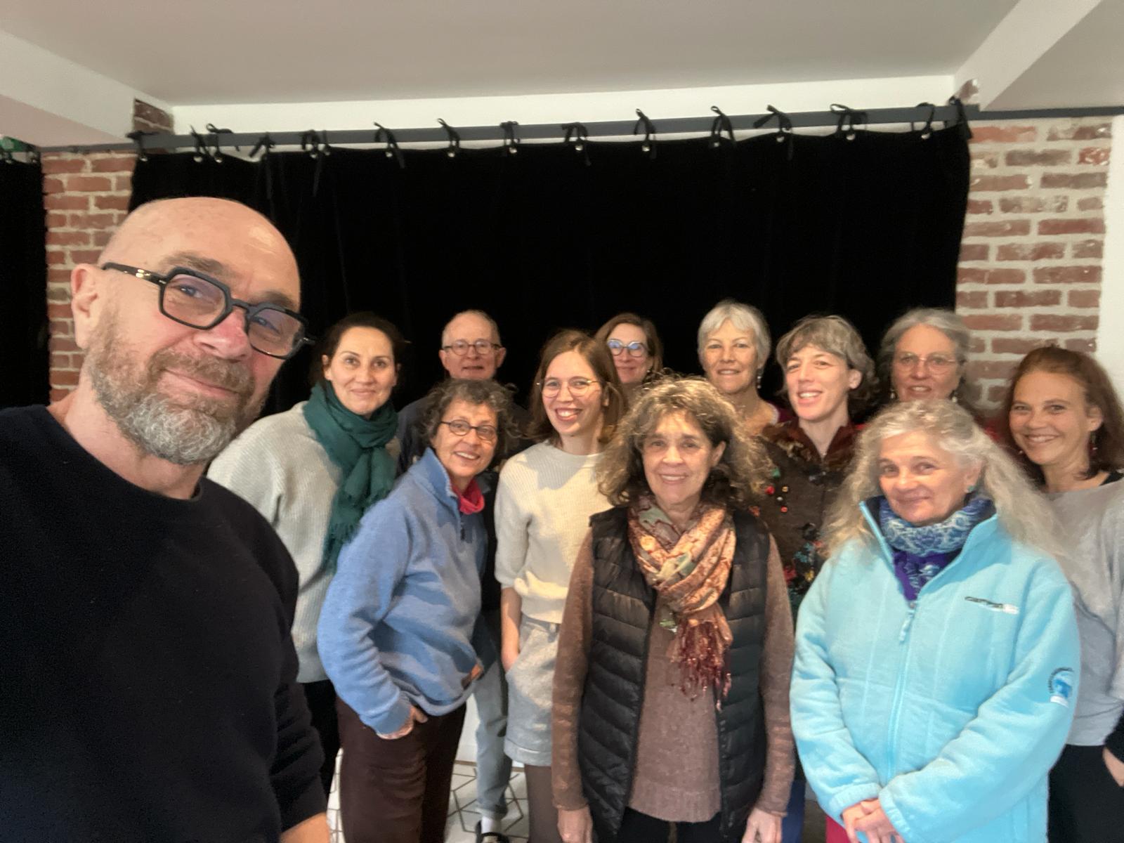 Un très beau moment de chant partagé, d'apprentissage tant sur le fonctionnement de la voix, sur l'histoire de la polyphonie et bien sûr de chants nouveaux. Jean-Jacques et Emmanuel ont fait preuve de beaucoup d'écoute, d'exigence et d'humour, et ont créé les conditions pour que le groupe fonctionne. Un régal !!