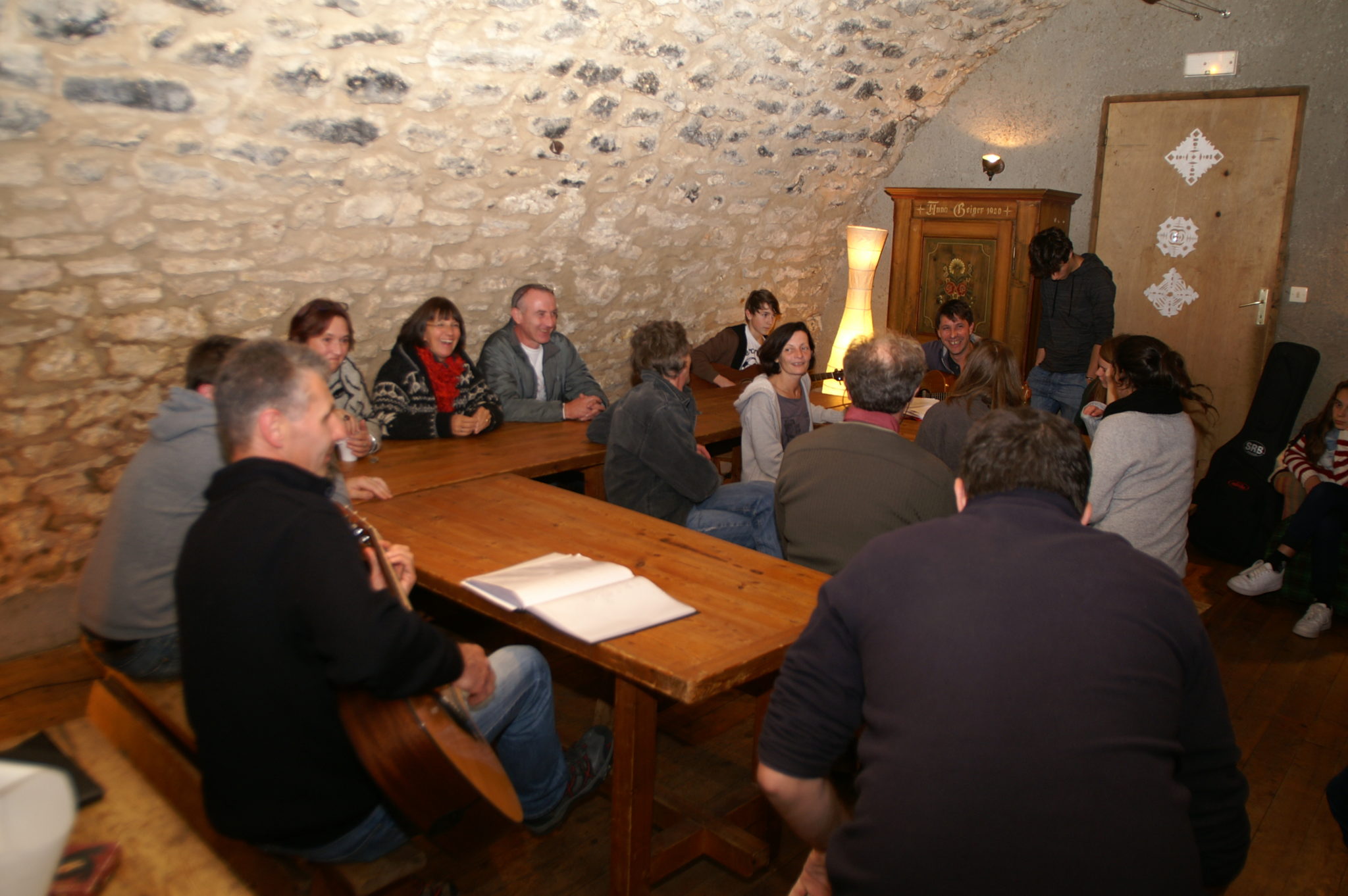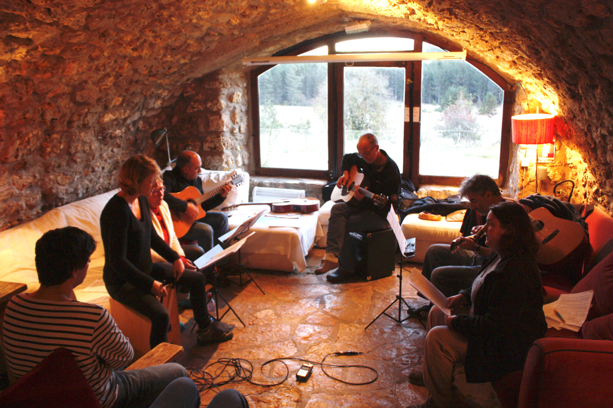 - cela forme un vrai groupe et le fait que Hélène (qui gère le gite) soit aussi une chanteuse top (semi-pro en fait) et participe à toutes les séances de travail est un plus énorme. Elle nous aide, on l’aide. Pas l’impression d’être à l’hôtel. Et quand on travaille un morceau, le fait que le chant soit cadré est un atout +++