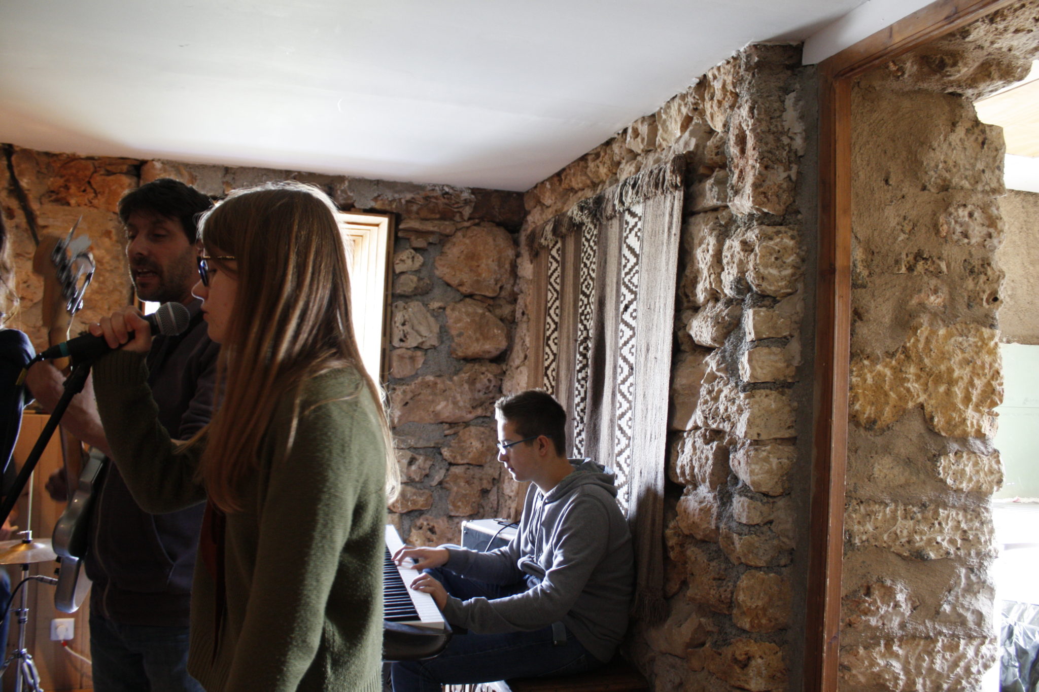 Cet endroit paisible permet de vider son esprit et s'ouvrir à la musique. La bergerie vous attire avec ses immenses canapés et ses voûtes de pierre et rien ne vient troubler la créativité. La grande cheminée de la cuisine familiale regroupe tout le monde autour de discussions pour refaire le monde autour d'un verre, de bons petits plats, de la musique.