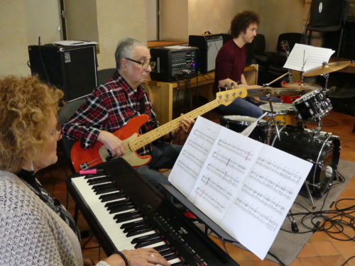 Collectivement, on travail 4-5 morceaux avec un rendu à la fin assez bluffant. C’est le point fort. Le groupe travaille ensemble avec un objectif (restituer le morceau) et chacun avance sur ses points faible.