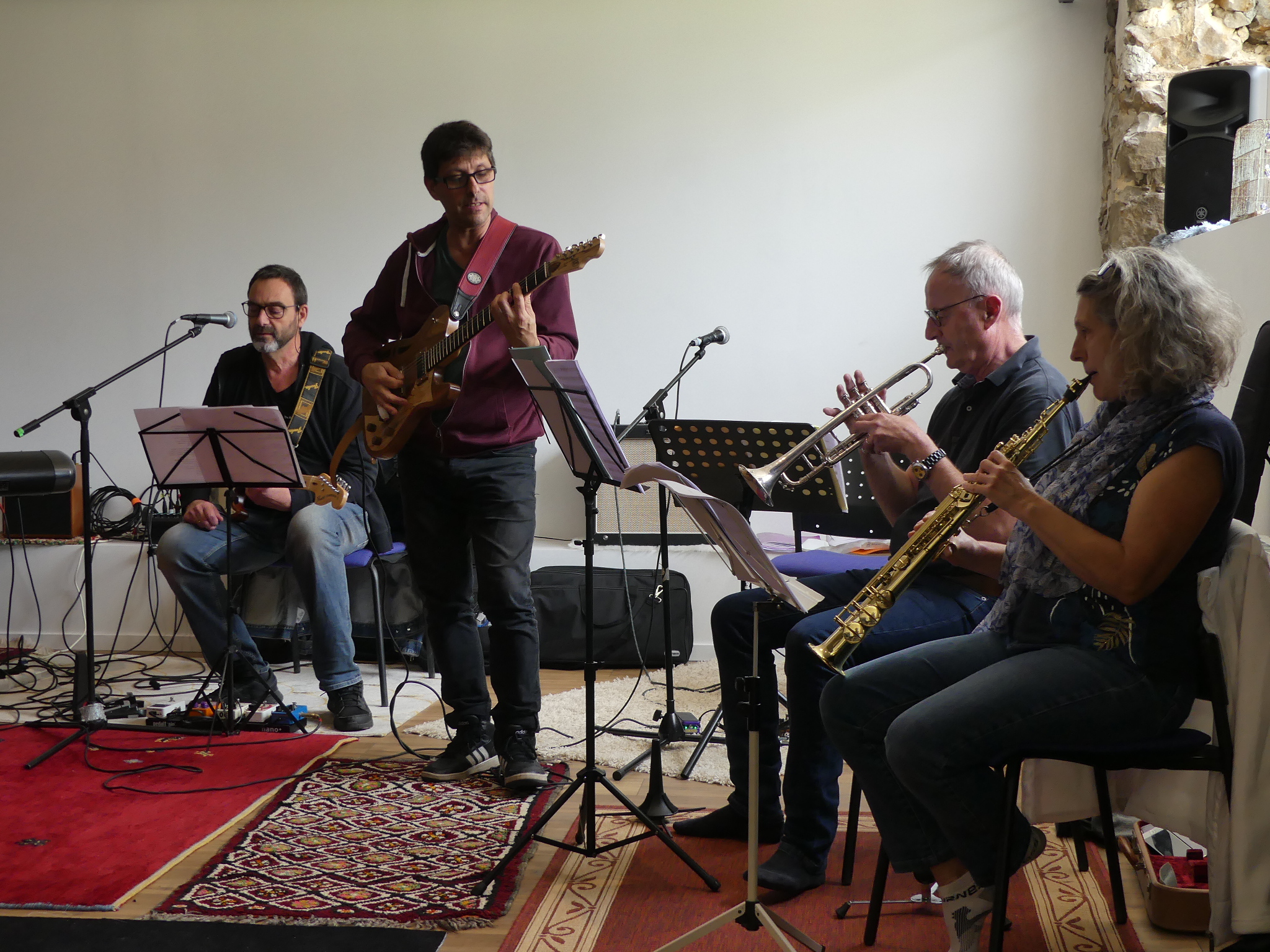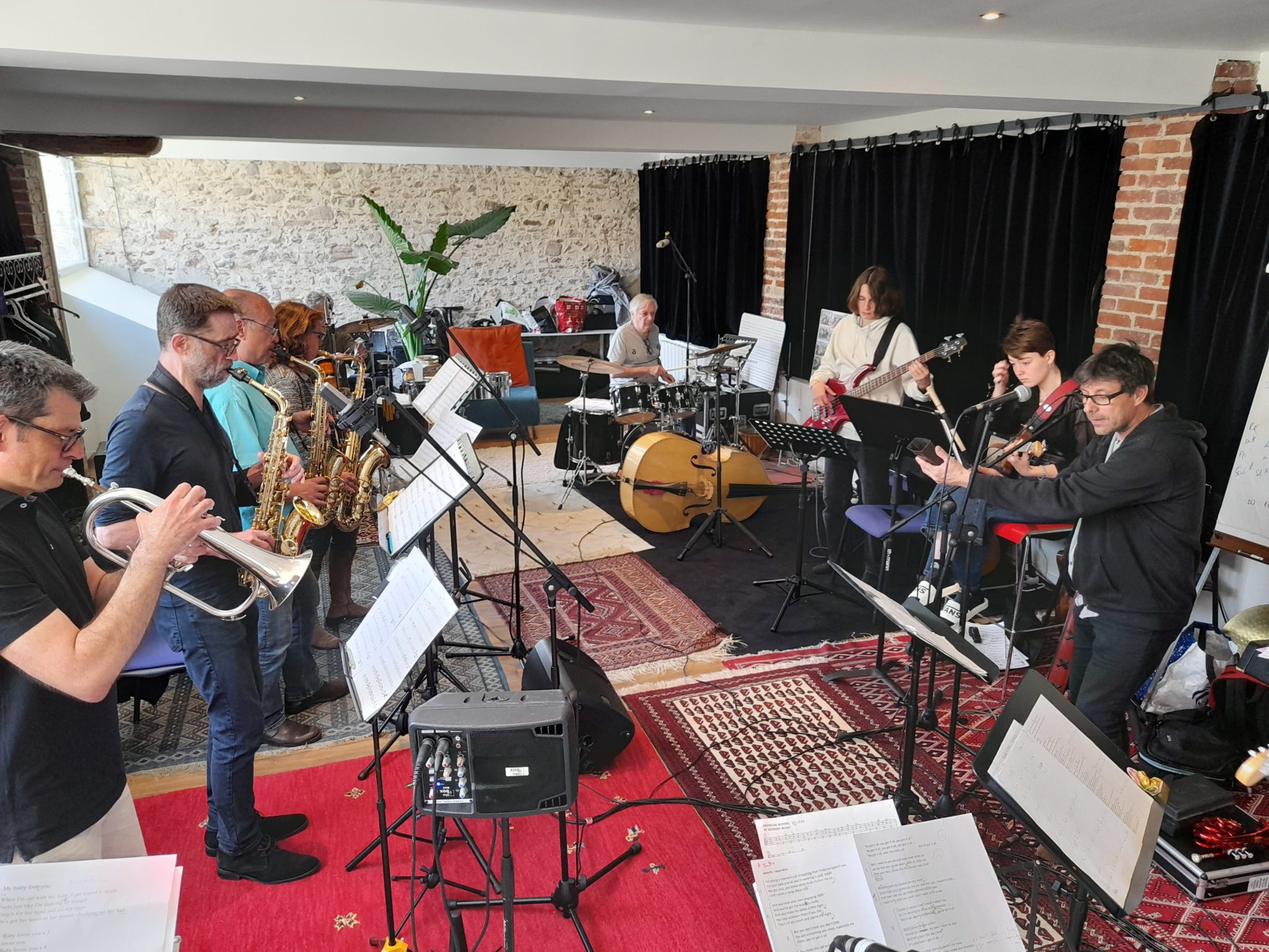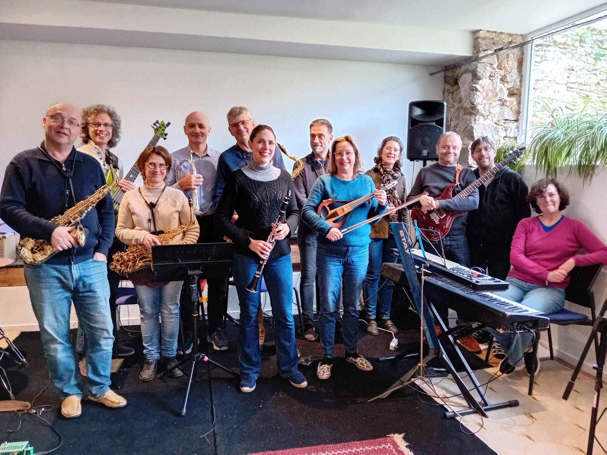 C'était mon premier stage. Une chouette ambiance sérieuse, joyeuse et bienveillante. Et aussi bien sûr un bon contenu technique et musical. Quel bonheur de jouer avec des "vrais gens", pas des back tracks !