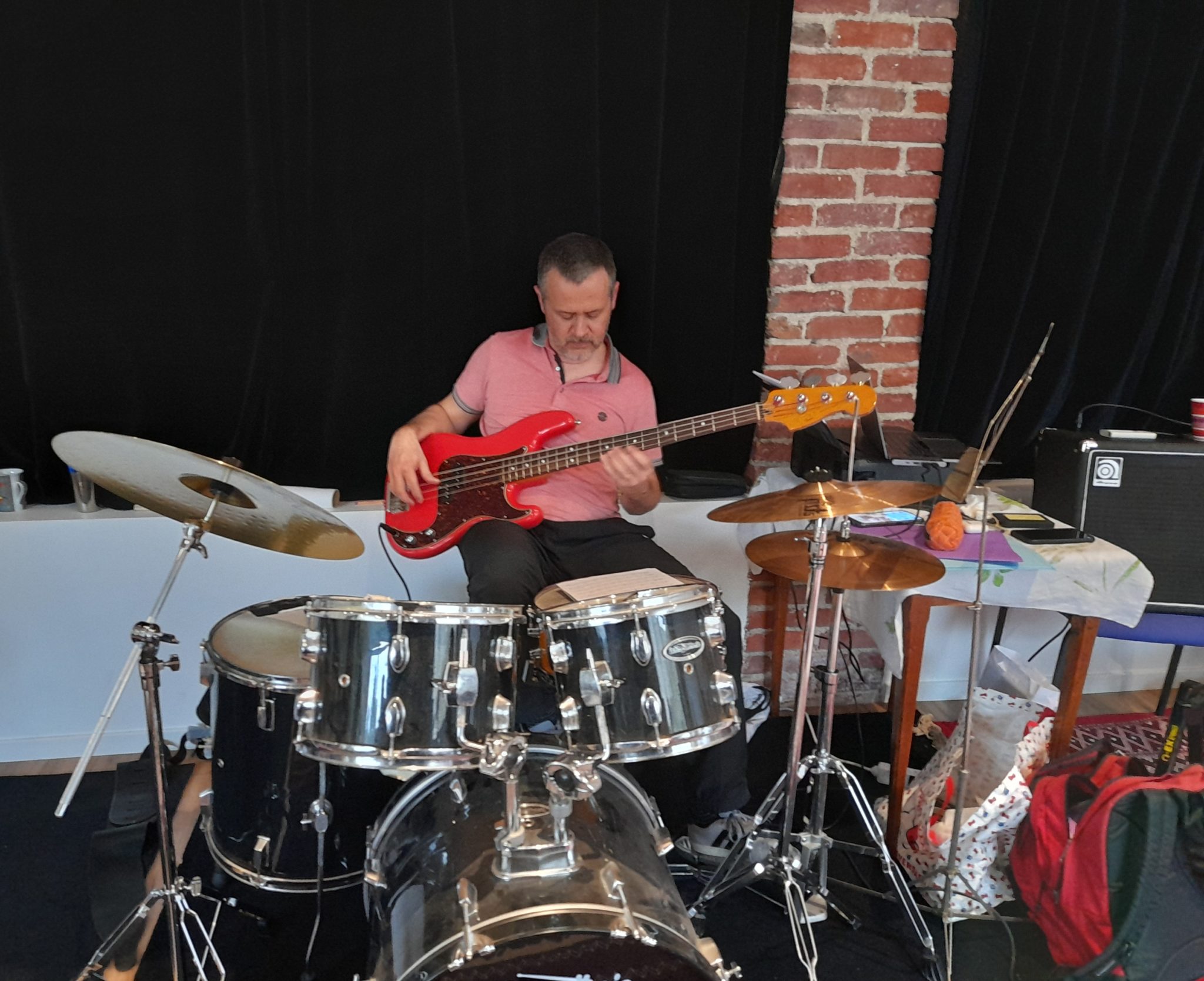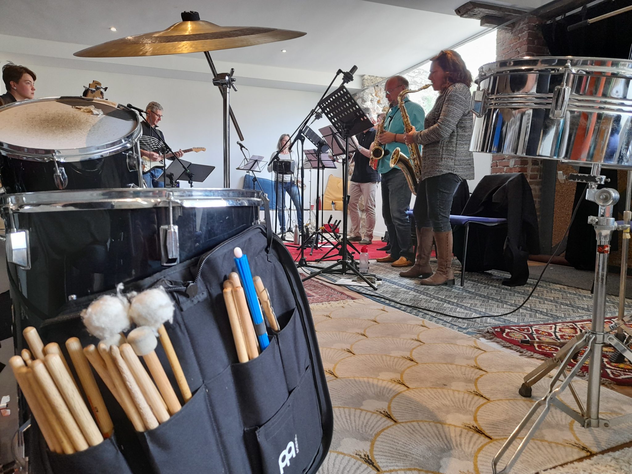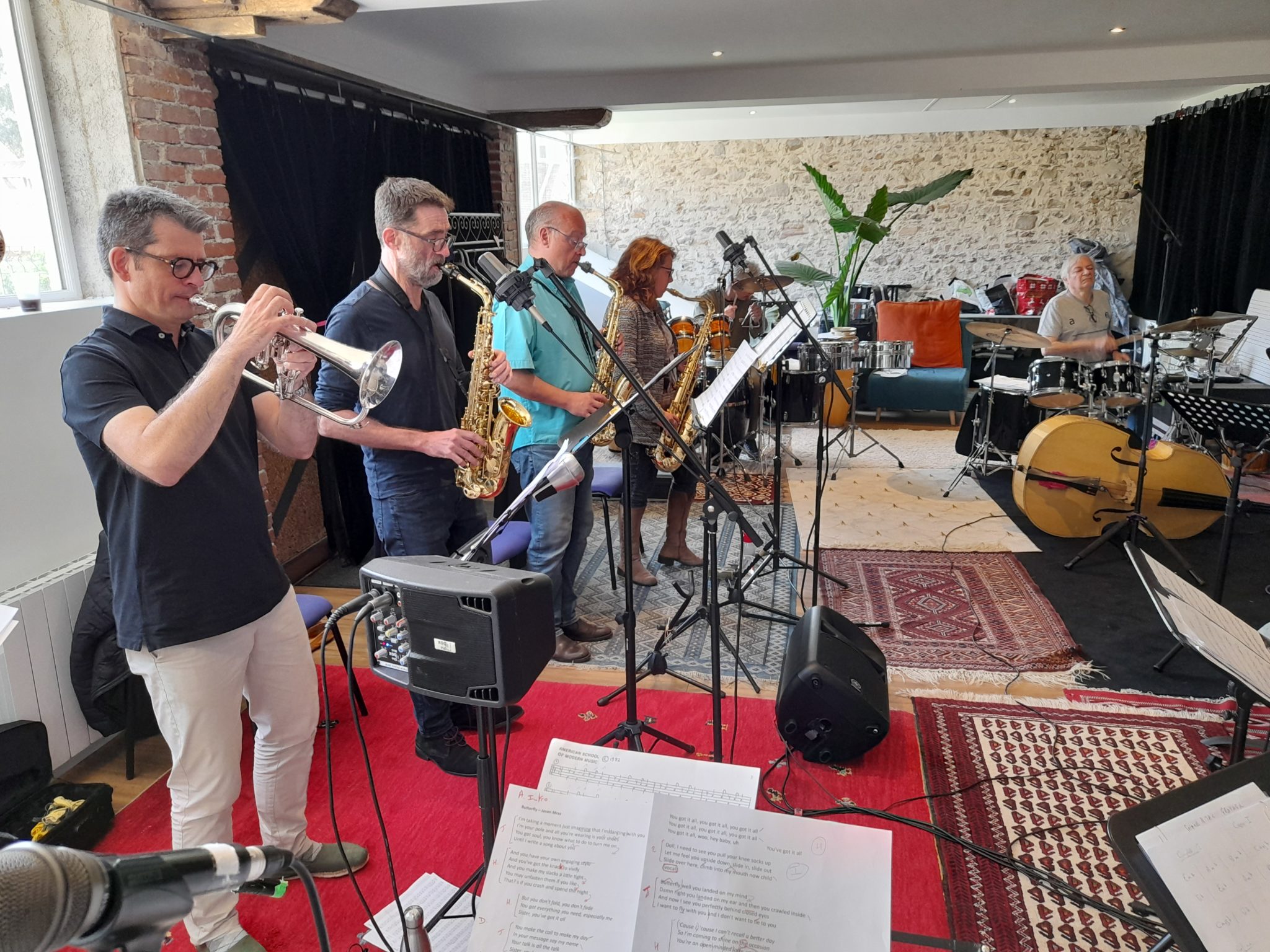 C'était mon premier stage. Une chouette ambiance sérieuse, joyeuse et bienveillante. Et aussi bien sûr un bon contenu technique et musical. Quel bonheur de jouer avec des "vrais gens", pas des back tracks !