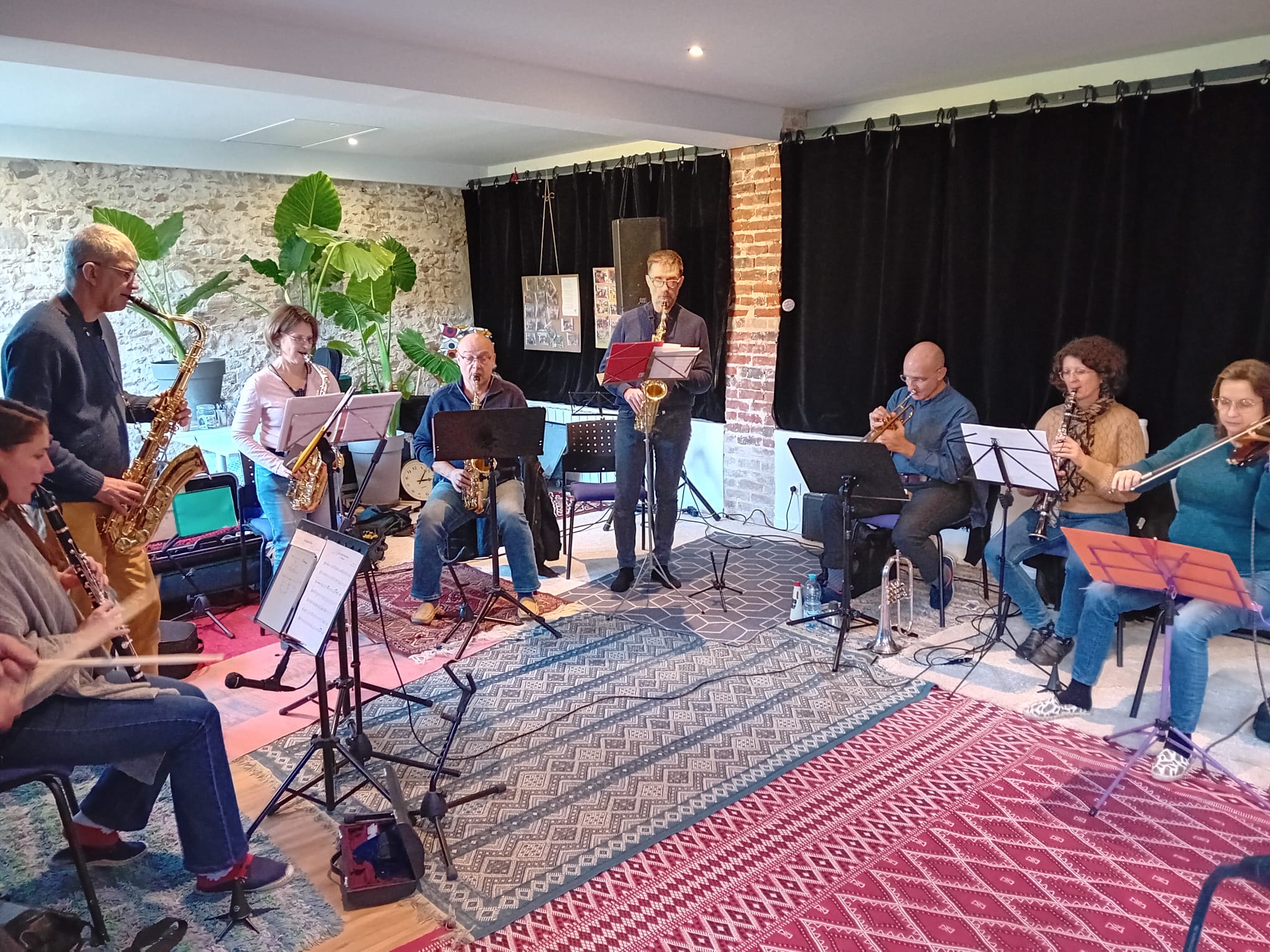 C'est une rencontre de nouveaux musiciens et des habitués dans un cadre convivial mais cadré sur les horaires et l'ordre par notre organisatrice. On nous offre une multitude de piste de travail en toute simplicité adapté à chacun. On y vient partager notre passion, nos expériences, nos façons de voir... On en repart boosté à bloc et on met du temps à redescendre même après le trajet de 3h ! 😉