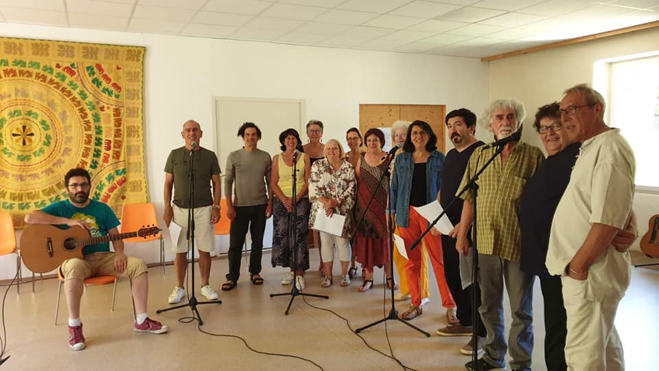Temps fort inoubliable tant par le travail de chant ensemble du matin qui nous relie , que dans le travail personnalisé autour du chant choisi par chacun où nous progressons sous le regard bienveillant et pro de Natacha Ezdra et un groupe soutenant , ce qui permet d'aller loin dans l'audace. Pour moi c'était une première avec micro et en public que je préparais pour un chant qui m'était difficile : je me suis un peu plantée certes lors de la représentation, finale, mais tant pis , j'ai tellement progressé que je regarde le verre à moitié plein; et depuis je chante bien plus et c'est bon à vivre . il y a quelque chose de complet dans la démarche proposée