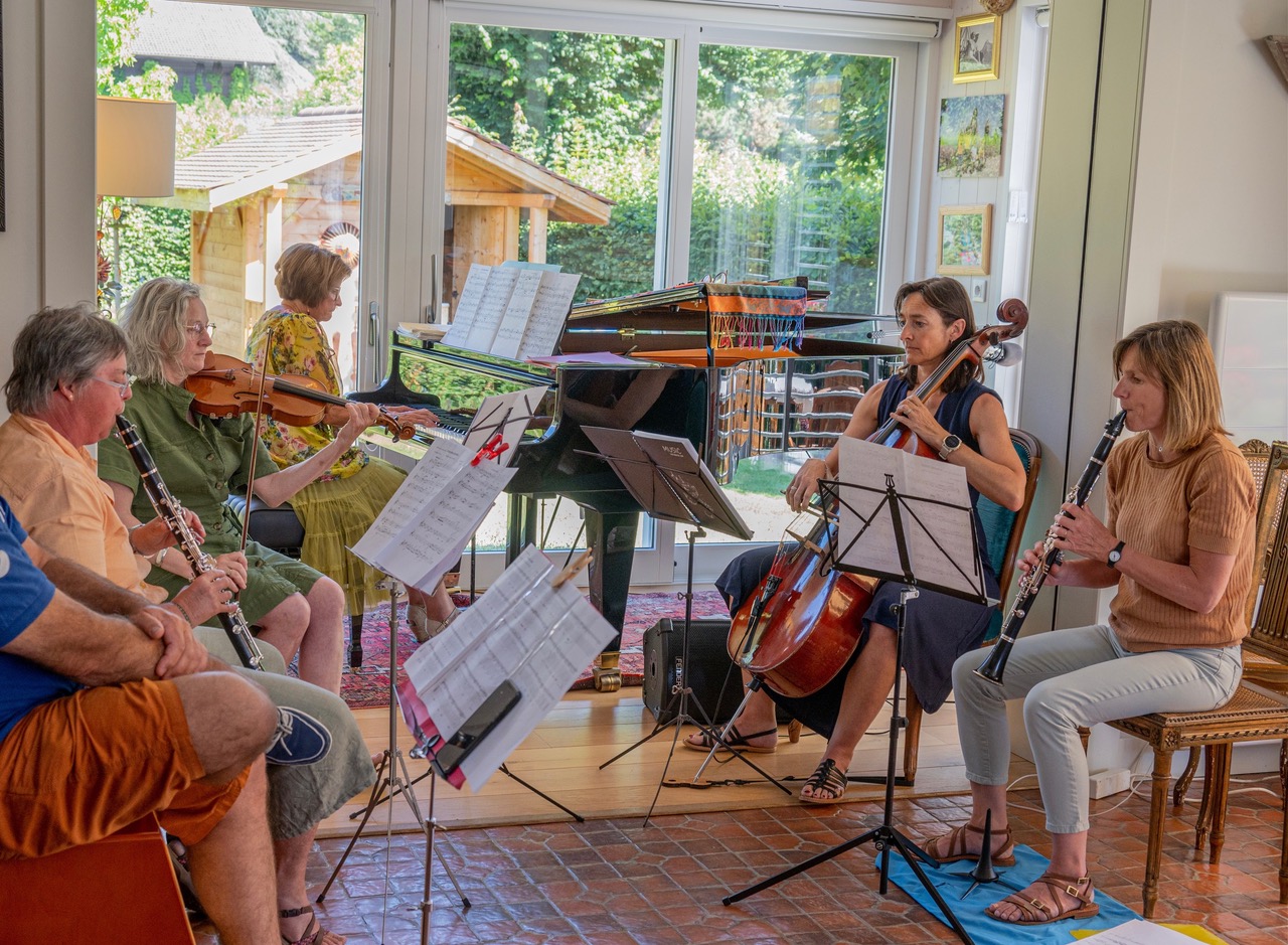 Matériel à prévoir : Apportez vos pupitres et vos instruments et accessoires. Apportez une tenue légère et selon vos goûts et la météo : une serviette plus une tenue de bain avec sandales de bain. Deux salles de bain et 3 WC vous permettront de vous changer pour profiter du lac (entre 21 et 24°C en Juillet-Août) le midi ou à la fin de la journée de musique.